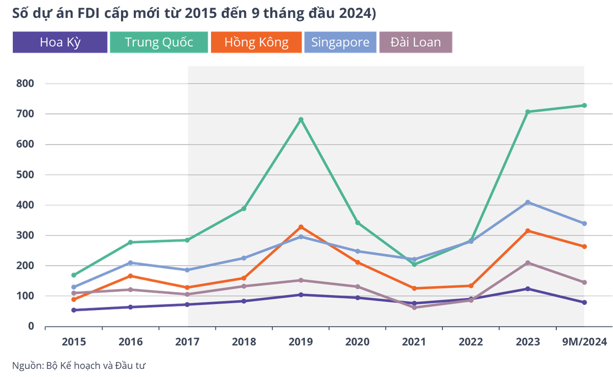 Trong những năm dịch Covid-19 (2020 – 2022), vốn đầu tư từ Trung Quốc và Hồng Kông sụt giảm, trong khi từ Singapore đạt đỉnh.