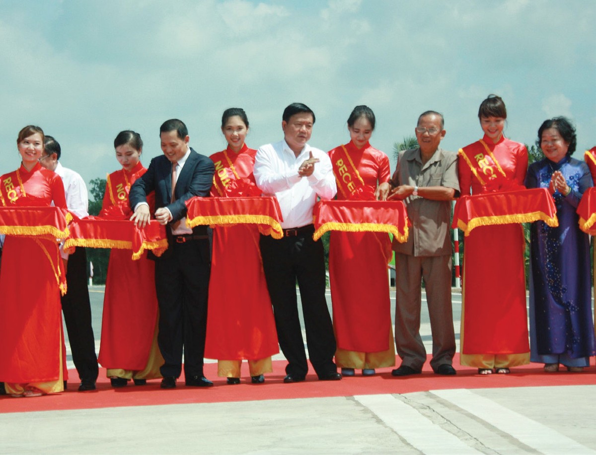 Ông Nguyễn Văn Đạt (thứ hai từ phải qua) tại Lễ khánh thành thông xe cầu Mỹ Lợi