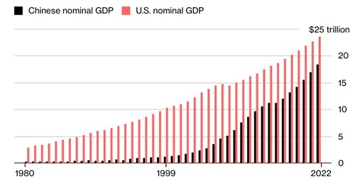 Khoảng cách giữa GDP Mỹ và Trung Quốc ngày càng thu hẹp..
