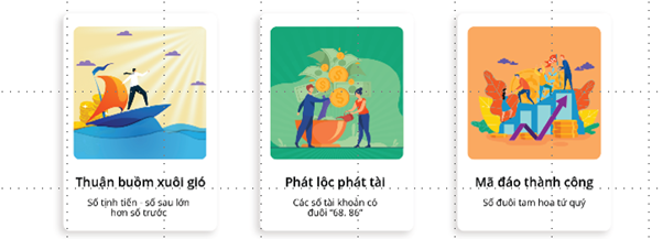 Đặc biệt, nhà đầu tư có thể tùy chọn miễn phí số tài khoản như ý với 3 bộ số phong thủy cực chất: Thuận buồm xuôi gió, Phát lộc phát tài, Mã đáo thành công.