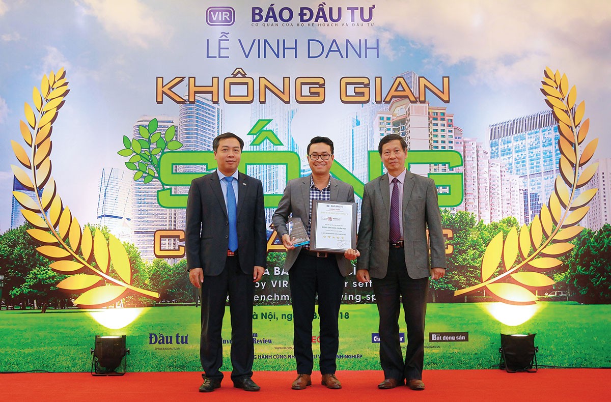 Ông Mai Phước An Tâm - đại diện truyền thông, thừa ủy quyền của lãnh đạo Công ty cổ phần Phát triển Bất động sản Phát Đạt nhận Cup vinh danh Dự án The EverRich Infinity