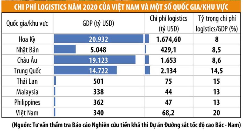 Nhận định này là hoàn toàn có cơ sở, bởi nếu chiểu theo kết quả nghiên cứu về mối liên hệ giữa chi phí logistics và vận tải đường sắt tại Việt Nam do Liên danh Tư vấn thẩm tra Báo cáo Nghiên cứu tiền khả thi Dự án Đường sắt tốc độ cao trên trục Bắc - Nam (Công ty TNHH Tư vấn và Xây dựng Đại học GTVT, Công ty TNHH Evo mc, Công ty Ove Arup & Partners Hong Kong Limited, Công ty cổ phần Tư vấn xây dựng và thương mại Hưng Phú, gọi tắt là Liên danh UTCV - Evo - Arup - HP) công bố vào giữa năm 2022.
