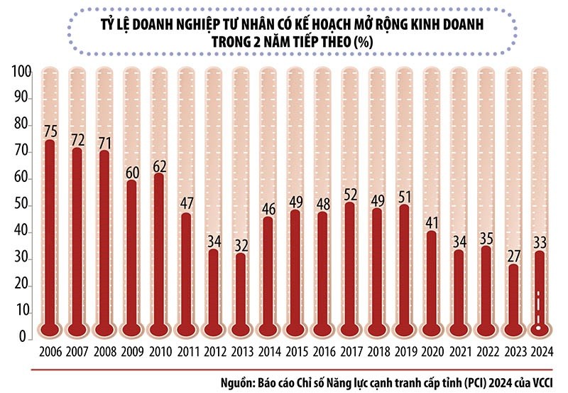 Trong khảo sát 14.000 doanh nghiệp tại 63 tỉnh, thành phố vào cuối năm 2024, VCCI đã hỏi trực tiếp các doanh nghiệp thực hiện quy trình đầu tư dự án có sử dụng đất về tình hình thực thi. Có tới 74% doanh nghiệp cho biết đã trì hoãn, thậm chí là hủy bỏ dự án do khó khăn về thủ tục liên quan đất đai. Trong đó, 67% doanh nghiệp cho rằng, thời gian giải quyết quá dài, hơn nhiều so với quy định, 57% than phiền thủ tục xác định giá đất mất quá nhiều thời gian...