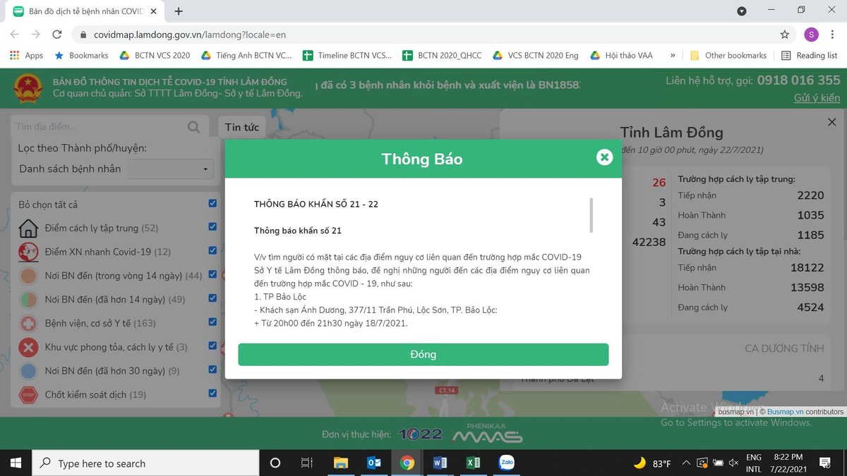 Bản đồ CovidMap hiển thị trực quan thông tin các ca bệnh Covid-19 tại địa phương thông qua mạng Internet, giúp người dân có thể theo dõi toàn diện, tổng thể diễn biến tình hình dịch bệnh, lịch sử di chuyển của các F, cũng như vùng cách ly y tế, chốt kiểm soát và lịch sử dịch tễ liên quan... Từ đó, người dân sẽ dễ dàng xác định được lộ trình người nhiễm Covid-19 và các điểm cách ly tập trung để không di chuyển đến.