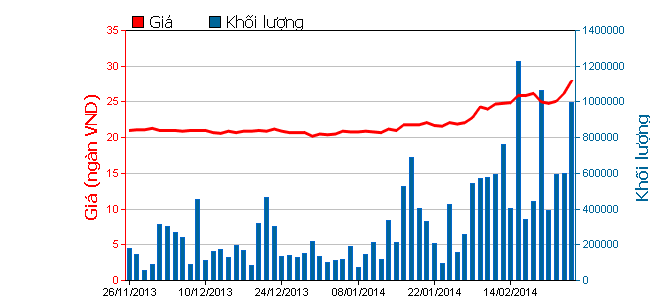 DXG được nước ngoài mua vào khá mạnh, tạo sức lan tỏa ra các nhà đầu tư trong nước và là lý do giúp mã này duy trì đà tăng mạnh. Kết thúc phiên, DXG tăng 900 đồng (+5,63%), lên 16.900 đồng/cổ phiếu với 3,66 triệu đơn vị được khớp, trong đó khối ngoại mua vào gần 0,86 triệu đơn vị.