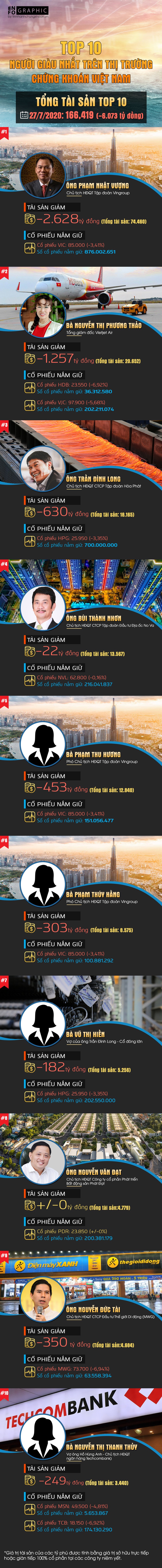 Tuần hoảng loạn thổi bay hơn 7.000 tỷ đồng của 10 người giàu nhất sàn chứng khoán Việt Nam