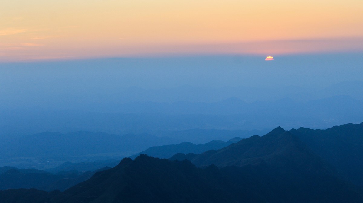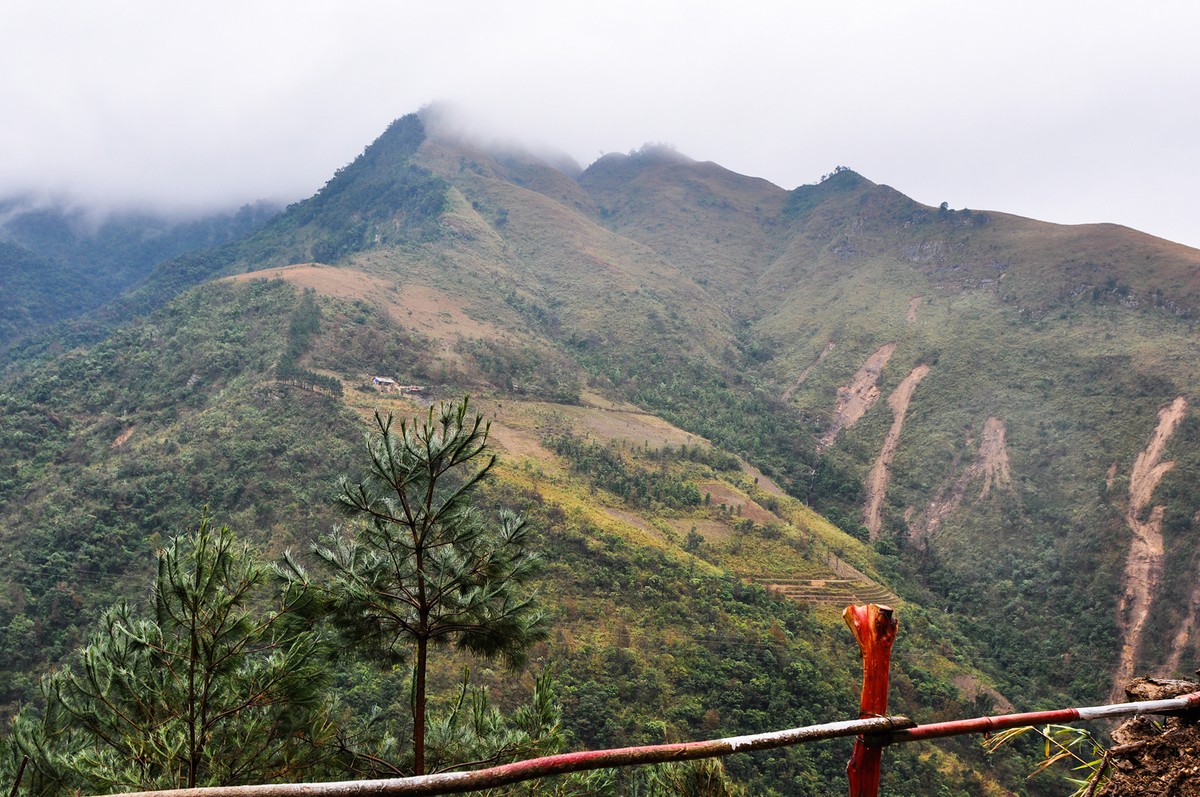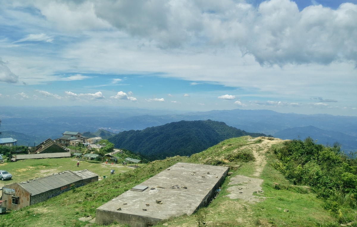 2. Đứng tại nơi cao nhất của “nóc nhà vùng Đông Bắc” nhìn xuống là một mảng sương mù dày đặc đang vây lấy hàng trăm ngọn núi nhấp nhô như sóng lượn, tạo nên quang cảnh tựa chốn thiên đường. Dãy này xếp dãy kia, miên man, chập chùng tiếp nối. Mây sà thấp la đà như khăn mỏng quấn xung quanh. Không gian mù mờ và bềnh bồng như thể được đệm bông.