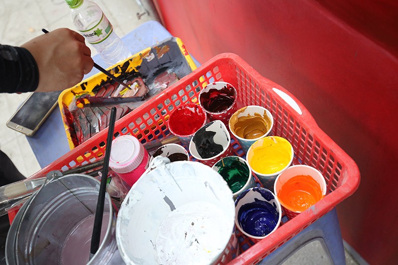 Các nghệ sỹ sử dụng loại sơn PU và golden acrylics, độ bền 5-10 năm để thực hiện các tác phẩm. Trước đó, chất liệu vẽ tranh đã được xử lý lớp chống nước đằng sau