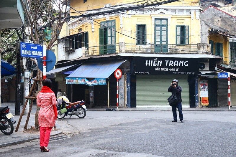 Ngay từ sáng sớm ngày mùng 1 Tết, nhiều người đã lên các khu phố cổ Hà Nội để chụp ảnh tận hưởng không khí xuân
