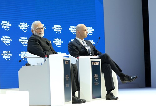 Phó Thủ tướng Vương Đình Huệ và Thứ trưởng Ngoại giao Bùi Thanh Sơn dự phiên khai mạc toàn thể WEF Davos 2018. Ảnh: VGP/Thành Chung