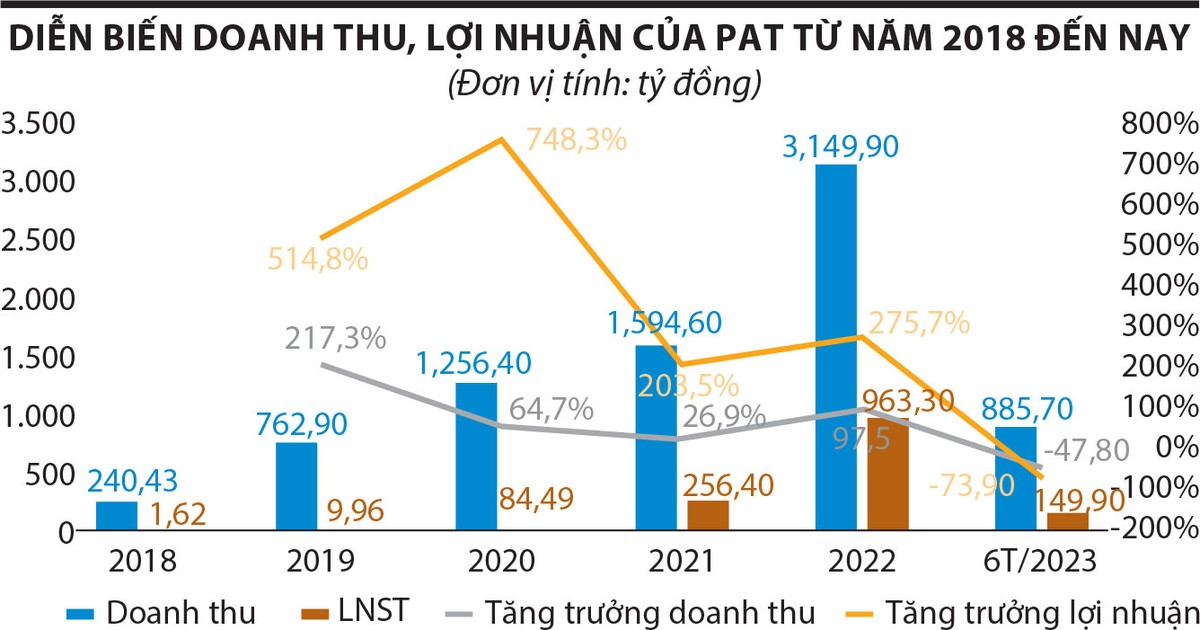 Đóng cửa phiên giao dịch cuối tuần qua (28/7/2023) ở mức 81.800 đồng/cổ phiếu, cổ phiếu PAT đã mất trên 50% giá trị so với đỉnh giá được thiết lập vào ngày 23/6/2022, khi mới chào sàn được 5 phiên.