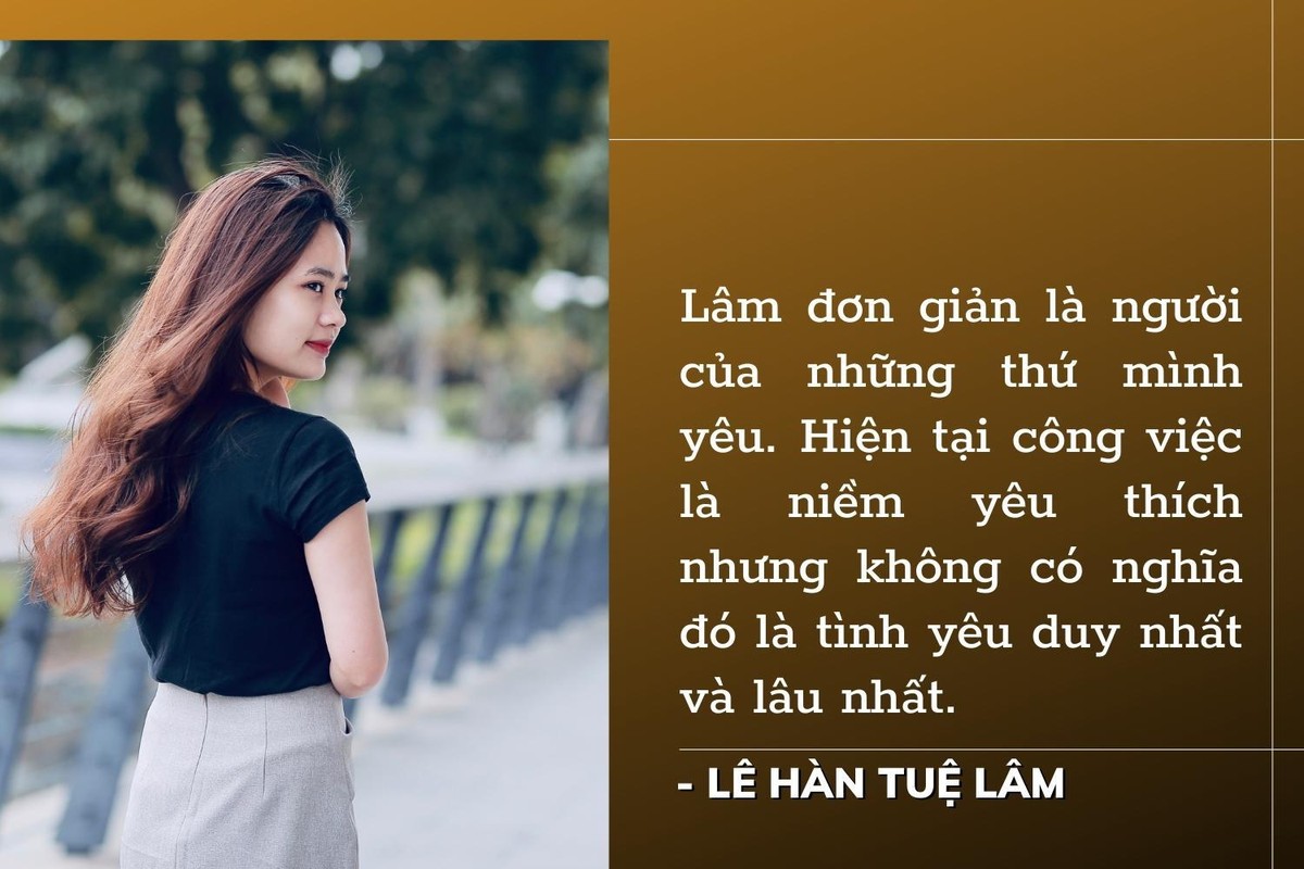 -Lê Hàn Tuệ Lâm: Lâm không hẳn là con người của công việc, Lâm đơn giản là người của những thứ mình yêu. Hiện tại công việc là niềm yêu thích nhưng không có nghĩa đó là tình yêu duy nhất và lâu nhất.