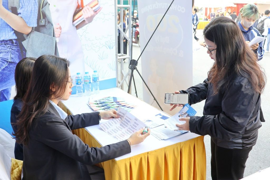 Các bạn sinh viên được CBNV PJICO tư vấn, hỗ trợ nhiệt tình