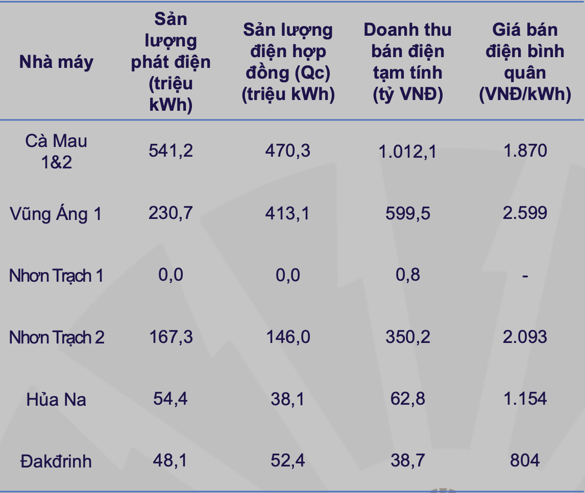 Trong tháng 7, tổng sản lượng phát điện của POW ở mức 1.041,7 triệu kWh, giảm hơn 18% so với cùng kỳ năm ngoái. Theo đó, doanh thu bán điện của toàn Công ty ước đạt hơn 2.064 tỷ đồng, giảm hơn 10% so với tháng 7/2023.