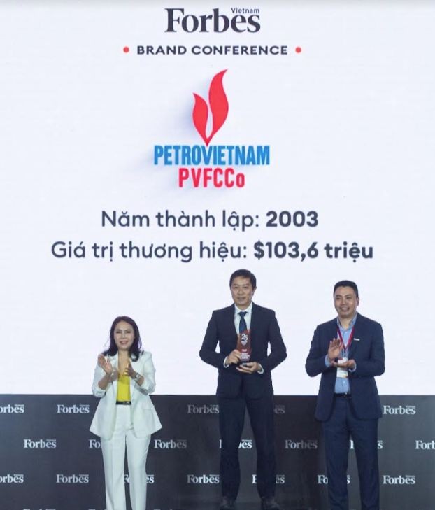 Danh sách Thương hiệu dẫn đầu Việt Nam được TC Forbes Việt Nam thực hiện thường niên từ năm 2016. Danh sách năm nay tập trung vào nhóm công ty trong lĩnh vực hàng tiêu dùng cá nhân và công nghiệp – hai lĩnh vực xương sống của nền kinh tế. Trong Top 25 này, thương hiệu PVFCCo được tính toán trị giá khoảng 104 triệu USD, nằm trong Top 3 thương hiệu có giá trị cao nhất.