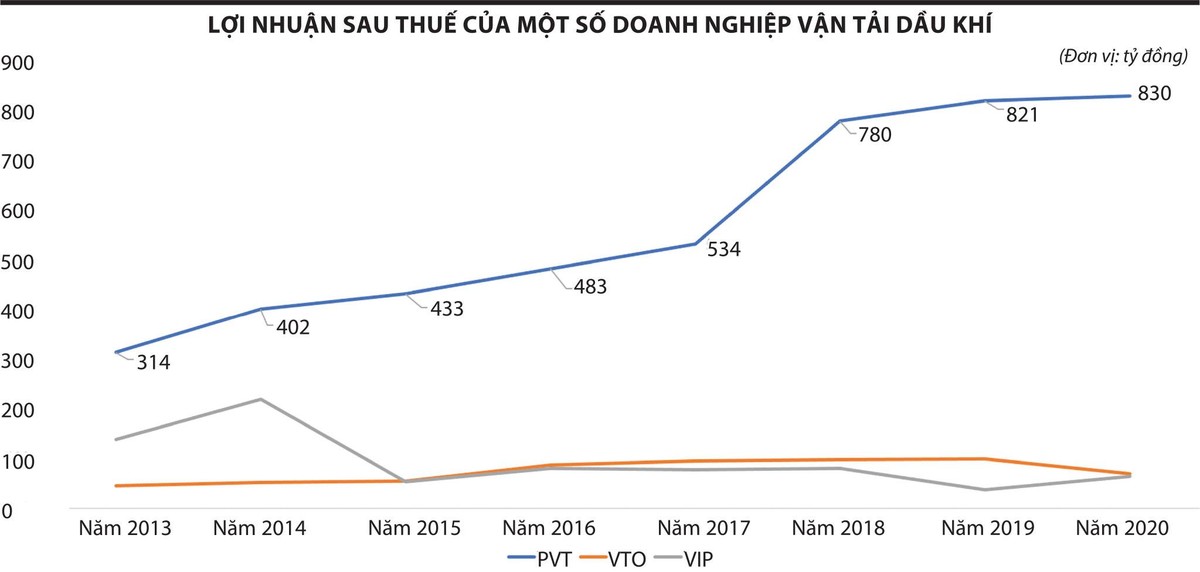 Xét về lợi nhuận, kể từ năm 2012 đến 2020, PVTrans liên tục ghi nhận tốc độ tăng trưởng lợi nhuận dương, trong khi một số doanh nghiệp cùng ngành như Công ty cổ phần Vận tải Xăng dầu Vitaco (VTO), Công ty cổ phần Vận tải Xăng dầu VIPCO (VIP), Tổng công ty cổ phần Xây lắp Dầu khí Việt Nam (PVX) có những năm kinh doanh khó khăn, lợi nhuận suy giảm.
