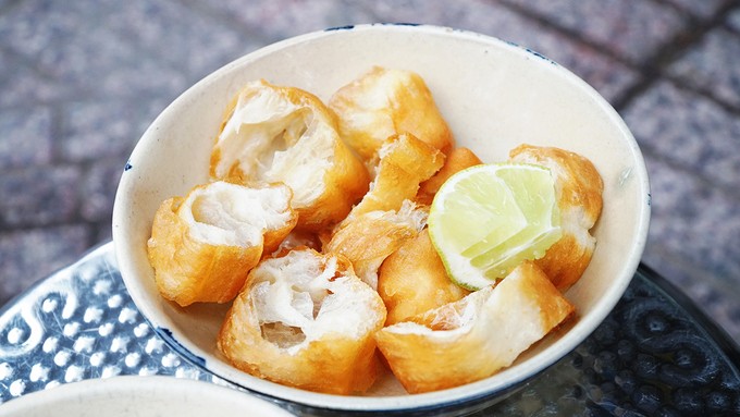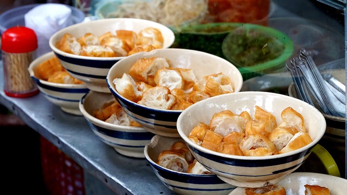 Khách có thể gọi cháo quẩy ăn kèm để no hơn. Giá một tô quẩy chiên giòn là 5.000 đồng.
