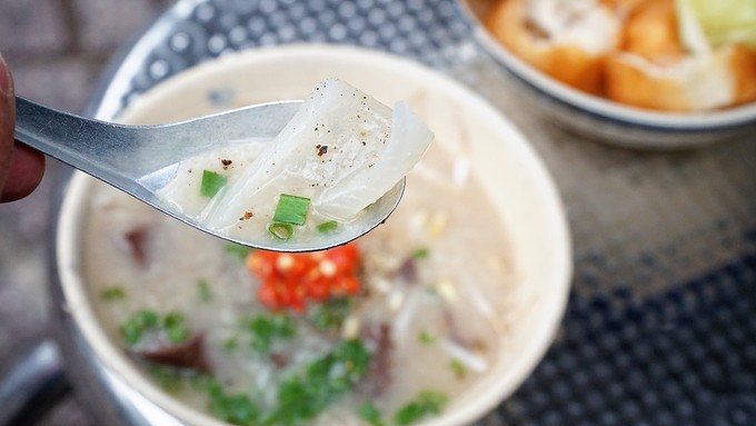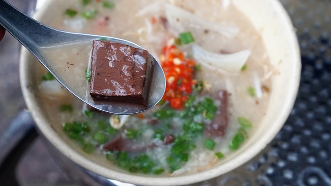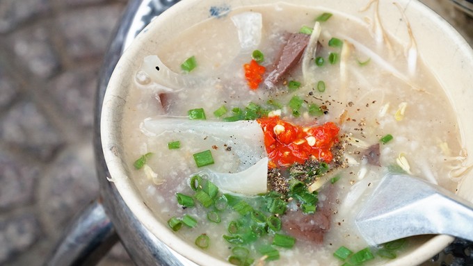 Hạt gạo được nấu nở bung và có màu cánh gián. Một tô cháo ở đây có giá 5.000 đồng.