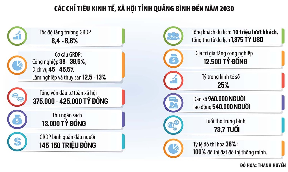 Theo Báo cáo Quy hoạch tỉnh Quảng Bình, đến năm 2030, tỉnh phấn đấu trở thành tỉnh phát triển khá của khu vực miền Trung. Tỉnh sẽ bảo đảm tăng trưởng kinh tế nhanh và bền vững trên cơ sở phát huy hiệu quả các tiềm năng, lợi thế, tận dụng các thành tựu khoa học công nghệ, đổi mới sáng tạo; xây dựng Quảng Bình trở thành nền kinh tế năng động ở khu vực miền Trung, với trọng tâm là ngành dịch vụ và du lịch nổi bật; công nghiệp sạch, năng lượng tái tạo; nông nghiệp công nghệ cao, sinh thái, trách nhiệm, bền vững.