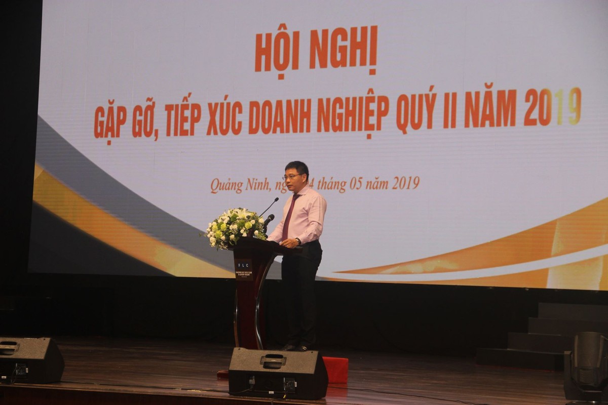 Ông Nguyễn Văn Thắng, Phó Chủ tịch UBND tỉnh Quảng Ninh báo cáo tại Hội nghị về tình hình phát triển doanh nghiệp và các giải pháp hỗ trợ phát triển doanh nghiệp năm 2019. Ảnh: Thanh Tân.