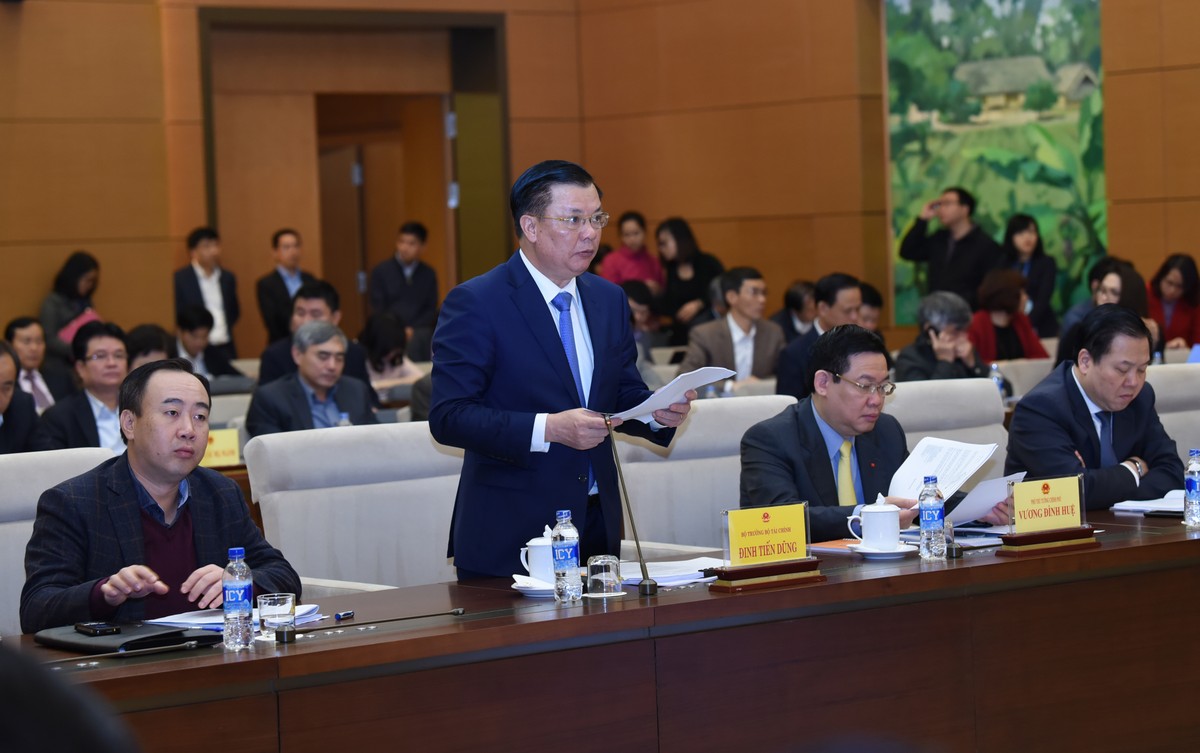Bộ trưởng Bộ Tài chính Đinh Tiến Dũng trình bày báo cáo tại buổi làm việc. Ảnh: VGP/Thành Chung