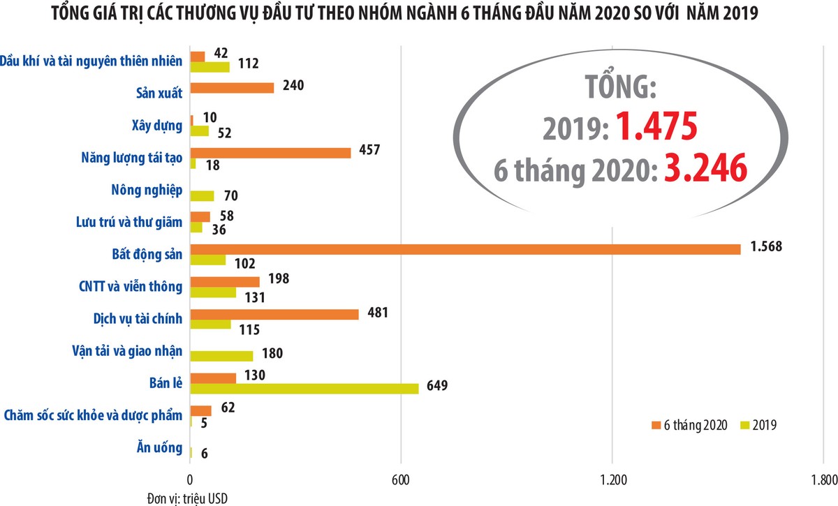 Hơn nữa, giá trị các giao dịch trong 6 tháng 2020 đã vượt xa, hơn gấp đôi con số tổng giao dịch của năm 2019.