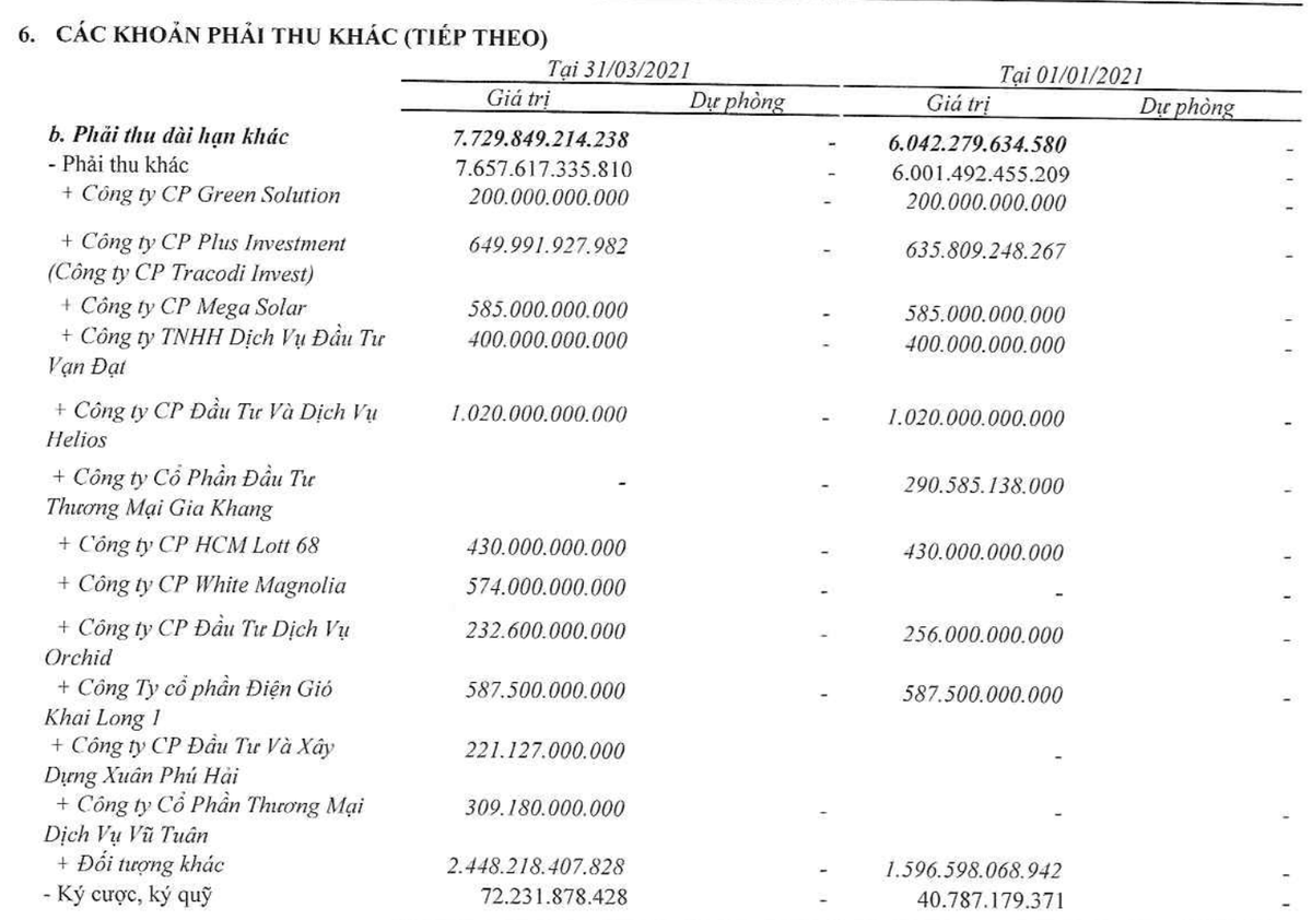 Điểm đáng lưu ý, trong kỳ khoản phải thu dài hạn tăng 27,9% so với đầu năm, tương ứng tăng lên 1.687,5 tỷ đồng; phải thu ngắn hạn tăng 6,4% so với đầu năm, tương ứng tăng thêm 454,9 tỷ đồng lên 7.538,4 tỷ đồng.