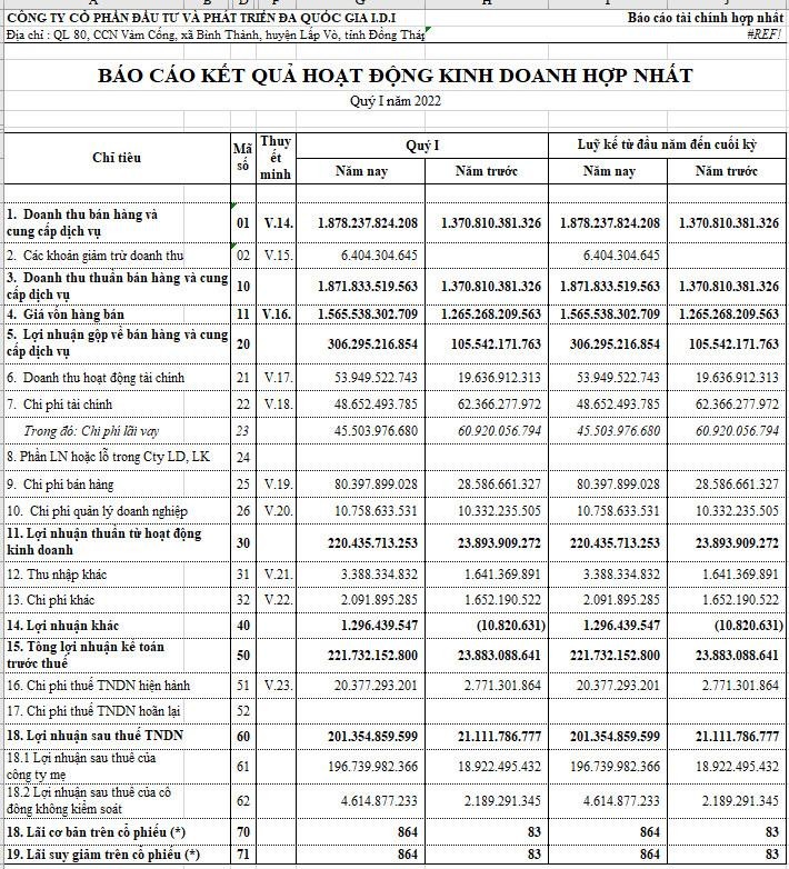 Sau khi trừ chi phí, lợi nhuận thuần từ hoạt động kinh doanh của IDI đạt 220 tỷ đồng, cộng thêm khoản lợi nhuận khác 1,29 tỷ đồng, Công ty đạt lợi nhuận trước thuế 221,7 tỷ đồng. Lợi nhuận sau thuế đạt 201 tỷ đồng, gấp 10 lần cùng kỳ năm trước.