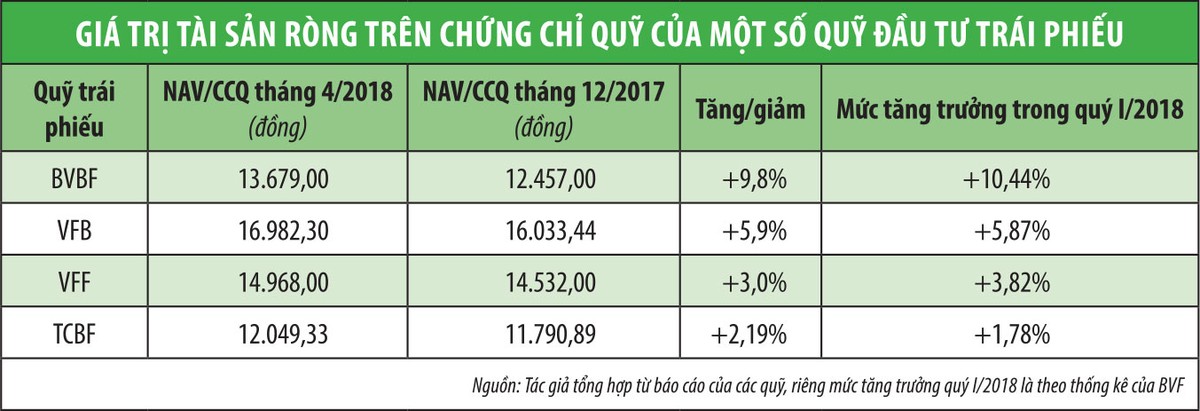 Quý I/2018, lợi nhuận từ các khoản đầu tư vào trái phiếu Chính phủ chiếm 70,7% tổng lợi nhuận của Quỹ. Thời điểm cuối tháng 3/2018, tỷ trọng đầu tư vào trái phiếu Chính phủ là 29% tổng tài sản, tăng mạnh so với tỷ trọng 15% thời điểm cuối tháng 2/2018. Trong quý I/2018, Quỹ đã phát hành 7,1 triệu chứng chỉ quỹ và mua lại 9,6 triệu chứng chỉ quỹ, giá trị mua ròng chứng chỉ quỹ là 39,3 tỷ đồng.