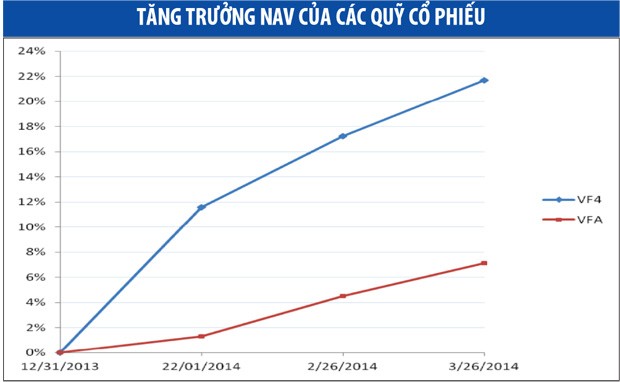 Trong khi đó, Quỹ VFA, cũng do VFM quản lý, chỉ tăng được 7,1% từ đầu năm đến ngày 28/3.