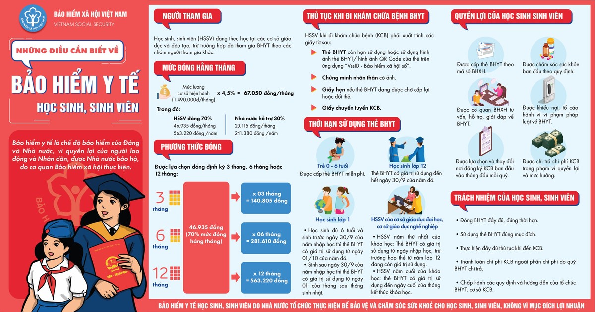 Thực hiện Luật Bảo hiểm y tế (BHYT), năm học 2020-2021, toàn quốc đã có khoảng hơn 18 triệu học sinh, sinh viên (HSSV) tham gia BHYT, đạt trên 97%, tăng 1,6% so với năm học 2019-2020; trong đó có hơn 14,5 triệu tham gia theo diện HSSV và 3,5 triệu tham gia theo nhóm khác.