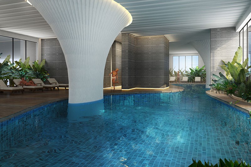 Bể bơi bốn mùa khoáng mặn tại tầng 5 tòa tháp EcoLife Capitol