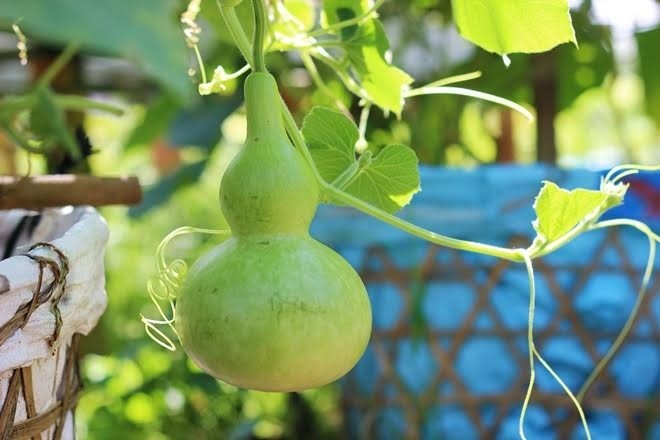 Với ý nghĩa mang lại no đủ, bầu hồ lô cũng là sản phẩm được khách đặt mua nhiều. Mỗi cây có khoảng 4-5 trái, giá dao động khoảng 200.000 đồng một chậu.