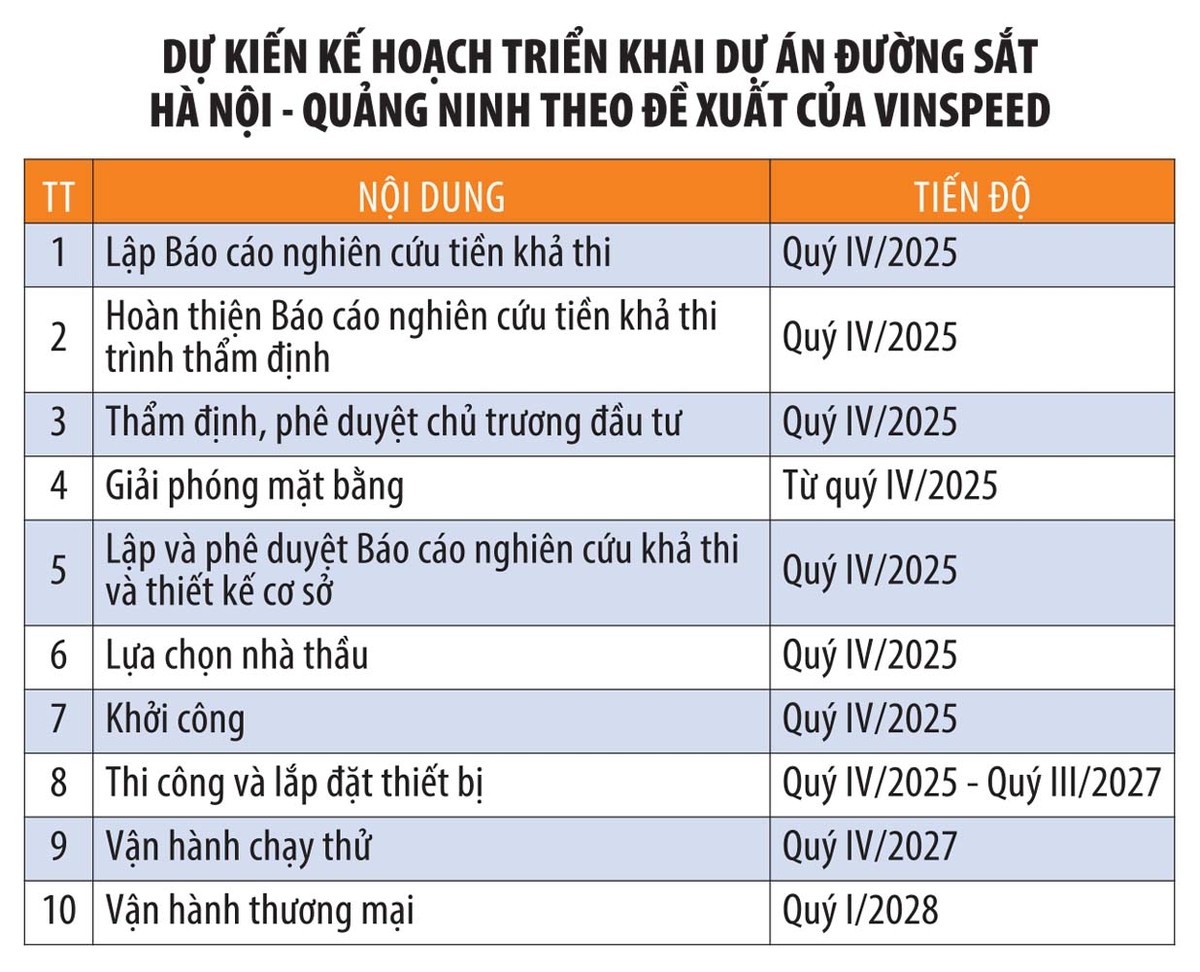 Cần phải nói thêm rằng, vào ngày 1/11/2024, CTCP Đầu tư và Phát triển đường sắt cao tốc VINSPEED đã có văn bản đề nghị thực hiện Dự án Đường sắt Hà Nội - Quảng Ninh gửi UBND các tỉnh, thành phố: Quảng Ninh, Hà Nội, Bắc Ninh và Hải Phòng.