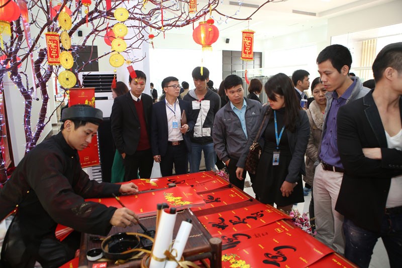 Sắc Xuân đã về tại phòng bán hàng phía ngoài căn hộ mẫu Goldmark City