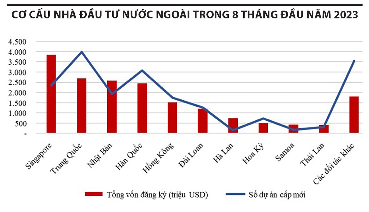 Thực tế, không chỉ Singapore, nhà đầu tư đến từ nhiều quốc gia và vùng lãnh thổ khác như Hàn Quốc, Đài Loan (Trung Quốc), Nhật Bản, Malaysia... cũng đang quan tâm tới việc đầu tư vào thị trường bất động sản Việt Nam. Đáng chú ý, Trung Quốc đã vươn lên đứng thứ ba trong số các nền kinh tế đầu tư nhiều nhất vào Việt Nam từ đầu năm tới nay. Số liệu từ Cục Đầu tư nước ngoài cho biết, 7 tháng đầu năm 2023, các nhà đầu tư Trung Quốc đã đăng ký đầu tư hơn 2,33 tỷ USD vào Việt Nam.