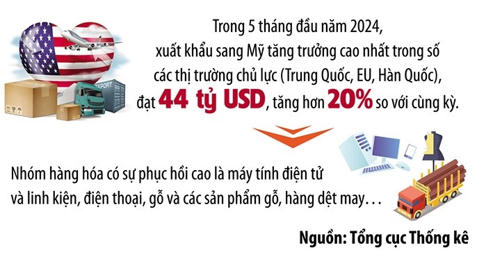 Trong những năm gần đây, Việt Nam nổi lên là một đối tác chuỗi cung ứng ổn định, an toàn và mang lại lợi ích cho kinh tế Mỹ. Năm 2022, hơn 110 tỷ USD hàng hóa, từ điện tử, linh kiện, máy móc thiết bị, đến đồ gỗ, hàng dệt may, nông thủy sản… đã được các nhà cung ứng xuất sang Mỹ. Năm 2023, chịu tác động từ suy giảm kinh tế toàn cầu, xuất khẩu sang Mỹ chỉ còn 97 tỷ USD, nhưng đây vẫn là thị trường nhập nhiều hàng Việt nhất.