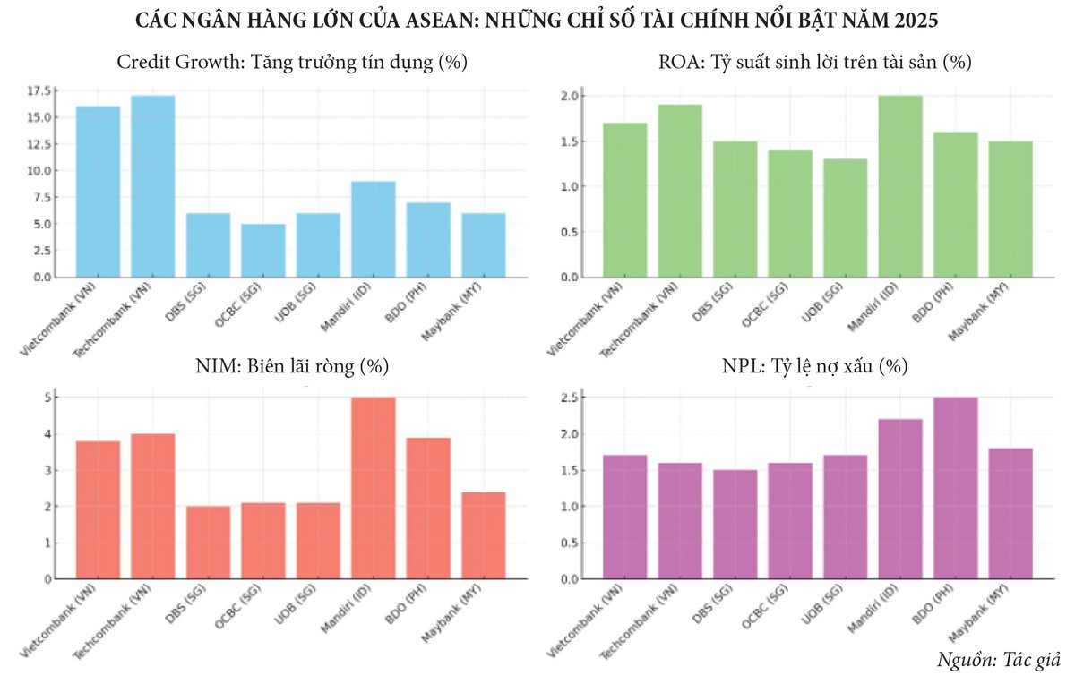 So với các nước ASEAN, Việt Nam đang nổi lên như một nền kinh tế tăng trưởng nhanh với quỹ đạo phát triển ấn tượng. Dù quy mô tổng tài sản của hệ thống ngân hàng Việt còn khiêm tốn so với Singapore, Indonesia hay Malaysia, nhưng tốc độ tăng trưởng lại vượt trội. Trong năm 2025, tăng trưởng tín dụng của Việt Nam dự kiến đạt 15 - 16%, vượt xa mức 4 - 5% của Malaysia, mức 2 - 3% của Singapore và thậm chí vượt cả mức 10 - 12% của Indonesia.