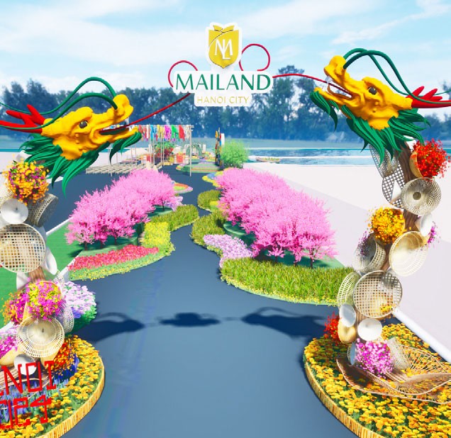Đặc biệt, hình ảnh cổng chào của đường hoa tái hiện hình ảnh linh vật Rồng của năm Giáp Thìn. Trong đó, tạo hình được lấy cảm hứng theo Rồng thời nhà Lý với vật liệu thủ công, gắn bó với lịch sử của đất nước. Đây sẽ là những điểm nhấn tinh tế, gửi đi lời chúc sum vầy đến tất cả khách du xuân.