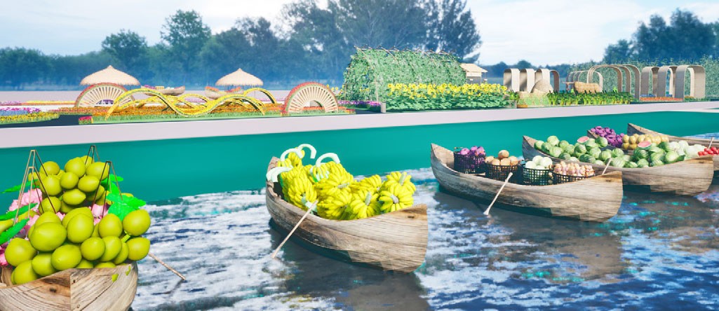 Không chỉ có bối cảnh thể hiện phong thái 3 miền đất nước, đường hoa còn mang đến sân khấu tràn ngập sắc xuân và các tiểu cảnh thân thuộc như phố ông đồ, thuyền hoa… Bên cạnh đó, phố đi bộ Pont de Long Bien với một không khí Tết Hà Thành khác biệt được kết hợp giữa không khí Tết xưa và hơi thở của Tết hiện đại ngày nay.