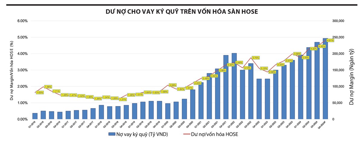 Tỷ lệ dư nợ ký quỹ trên vốn hóa của sàn HOSE đã lên mức gần 5%