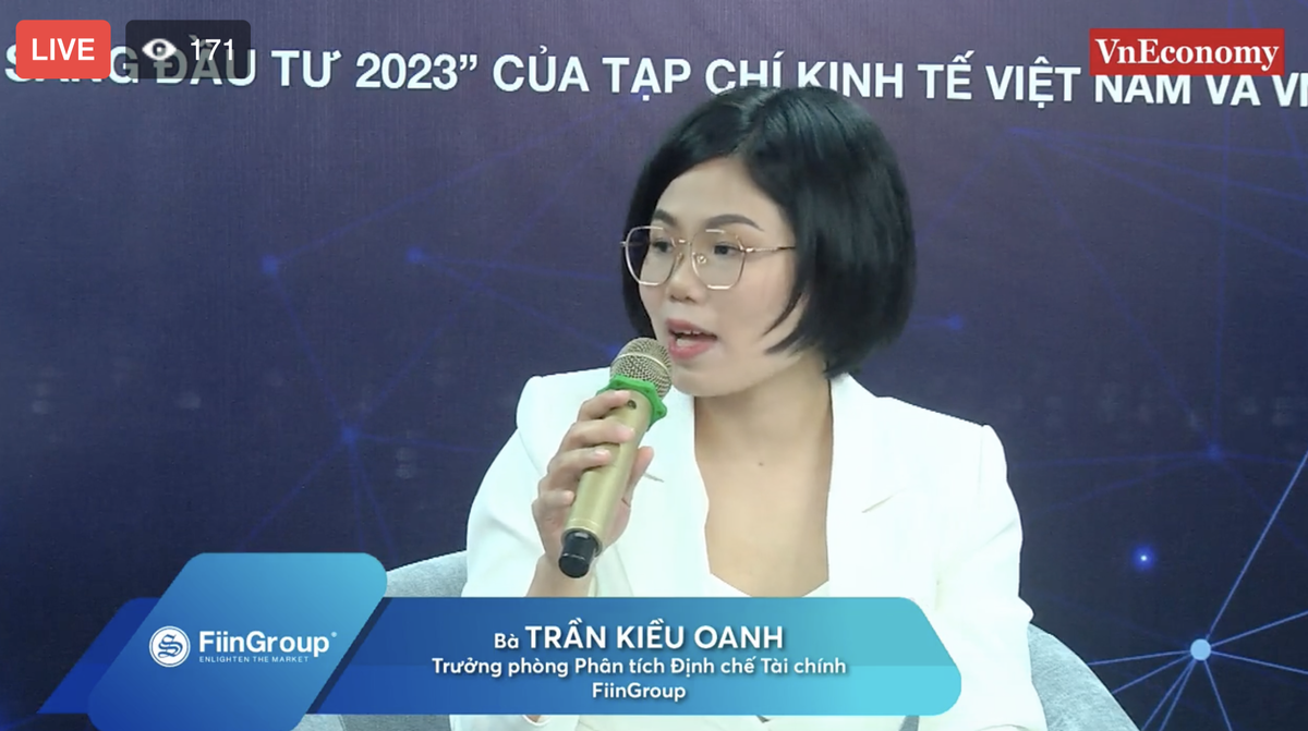 Thảo luận về động lực tăng trưởng của ngành ngân hàng trong năm 2023, bà Oanh cho rằng, mặc dù chi phí vốn tăng cao khiến NIM có thể sẽ thu hẹp trong nửa đầu năm và chỉ có thể cải thiện trong nửa cuối năm khi áp lực thanh khoản dịu đi, thu nhập phí từ dịch vụ thanh toán và Bancassurance sẽ trở thành nguồn thu nhập ổn định nhờ nỗ lực số hóa của ngân hàng và dư địa bán chéo lớn từ tập khách hàng ngày càng mở rộng.