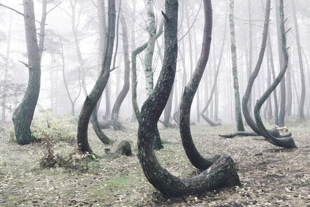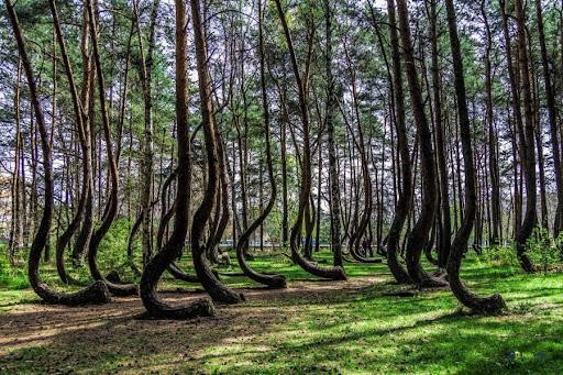 Hầu như toàn bộ cây cối trong khu rừng này đều không thể mọc thẳng mà đều bị uốn lượn, cong queo ở phần gốc cây, trông giống như một dấu hỏi chấm được quay lộn đầu. Nhiều người tin rằng, những chiếc cây ở đây là sản phẩm được tạo ra bởi bàn tay của con người nhờ vào một dạng công cụ hoặc kỹ thuật bí mật, tuy nhiên để giải thích cụ thể về phương pháp và mục đích của hành động trên thì chưa một ai có thể khám phá ra.