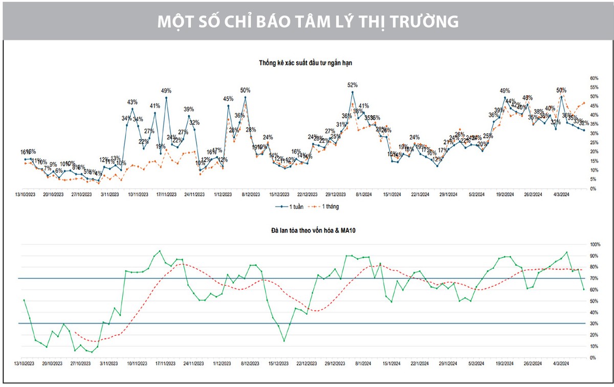 Nhìn chung, sau nhịp tăng mạnh vượt đỉnh cũ tháng 9/2023, VN-Index đã có vận động điều chỉnh trong tuần qua. Mặc dù vậy, xu hướng tăng ngắn hạn chưa được xác nhận vi phạm khi các ngưỡng hỗ trợ quan trọng được duy trì. Đồng thời, diễn biến điều chỉnh được đánh giá là hợp lý để thị trường có cơ hội kiểm định lại các vùng hỗ trợ, cũng như đón thêm lực cầu mới tham gia thị trường.