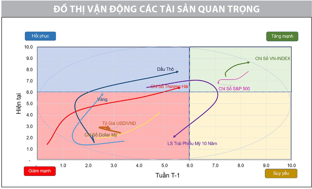 Một diễn biến đáng chú ý khác là vận động chỉ số Dollar Index (DXY) trong tuần qua ghi nhận sự trượt dốc, đánh mất mốc 103 sau bài phát biểu của Chủ tịch Fed về xu hướng giảm lãi suất - một động thái tích cực đối với các thị trường mới nổi và giá cả hàng hóa.