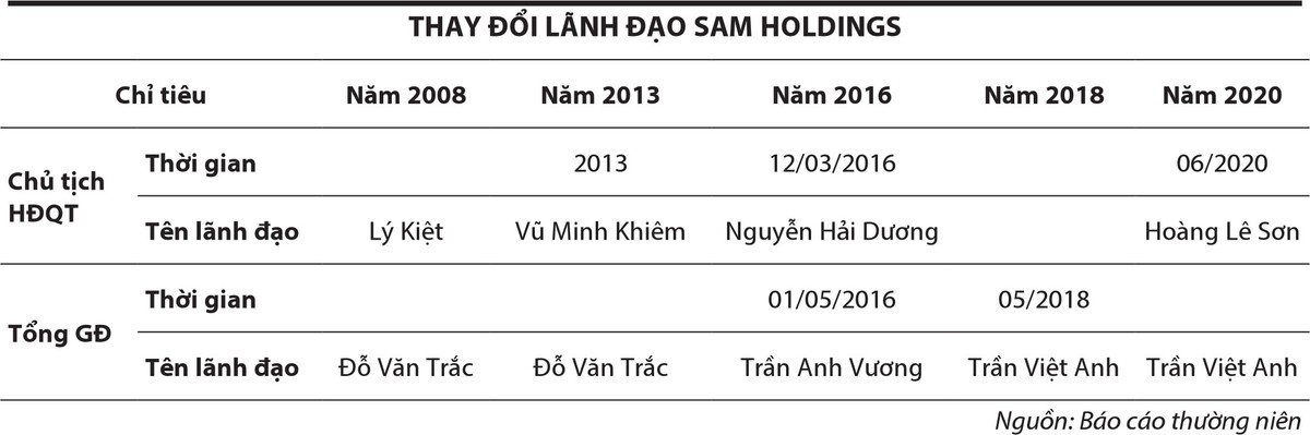 Năm 2020, SAM Holdings có định hướng tái cấu trúc một số mảng hoạt động. Trong đó đặc biệt lưu ý về các hoạt động cơ cấu lại tài sản, danh mục đầu tư hiện hữu và các hoạt động đầu tư mở rộng mới theo chiều hướng gia tăng các hoạt động kinh doanh ngắn hạn và tinh gọn các khoản đầu tư dài hạn.