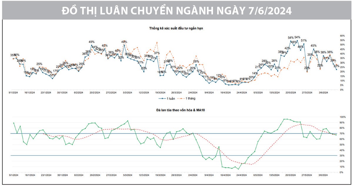 Sau nhiều lần tiệm cận vùng kháng cự quanh 1.300 điểm, nhóm cổ phiếu vốn hóa vừa và nhỏ vẫn giữ vị trí số 1 về khả năng thu hút dòng tiền trong ngắn hạn. Các giao dịch mua bán ngắn hạn hiện vẫn đang được ưu tiên vào hiệu suất đầu tư hơn là quan tâm đến xu thế thị trường chung. Dòng tiền vẫn liên tục luân chuyển giữa các nhóm ngành trong nhóm cổ phiếu vốn hóa vừa và nhỏ, điển hình như xuất khẩu, bất động sản khu công nghiệp, bán lẻ - tiêu dùng, công nghệ viễn thông, bảo hiểm, dầu khí, cảng, hóa chất… tạo ra các nhịp co kéo, nhưng xu thế tổng thể vẫn là tăng. Vậy nên, các giao dịch lướt sóng ngắn hạn vẫn đang tận dụng tối đa khả năng lướt sóng để tối ưu hóa lợi nhuận trong bối cảnh thị trường đi ngang hiện tại. Các chỉ báo định lượng dù có sự chậm lại nhưng vẫn đang cho thấy dòng tiền tiếp tục bám trụ lại để tìm kiếm cơ hội trên thị trường. Các dấu hiệu bán tháo hay hoảng loạn trong tâm lý thị trường cũng chưa hề xuất hiện, vậy nên, sóng tăng ngắn hạn vẫn được duy trì.