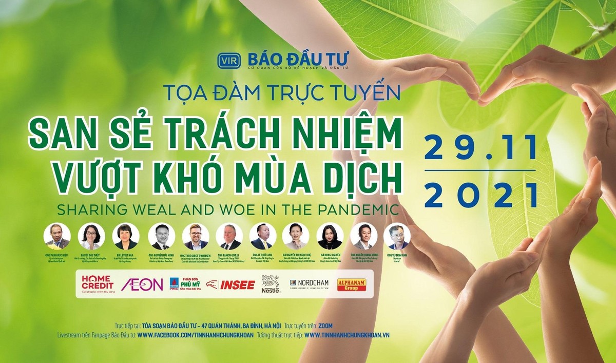 Với mong muốn tạo ra một diễn đàn nơi các nhà quản lý, các chuyên gia kinh tế, lãnh đạo doanh nghiệp đánh giá về hoạt động cộng đồng, chia sẻ kinh nghiệm và đưa ra các khuyến nghị phù hợp về phát triển bền vững, hoàn thiện tiêu chuẩn của doanh nghiệp tại Việt Nam trong điều kiện bình thường mới, Báo Đầu tư sẽ tổ chức Tọa đàm trực tuyến với chủ đề “San sẻ trách nhiệm vượt khó mùa dịch” vào sáng ngày 29/11.