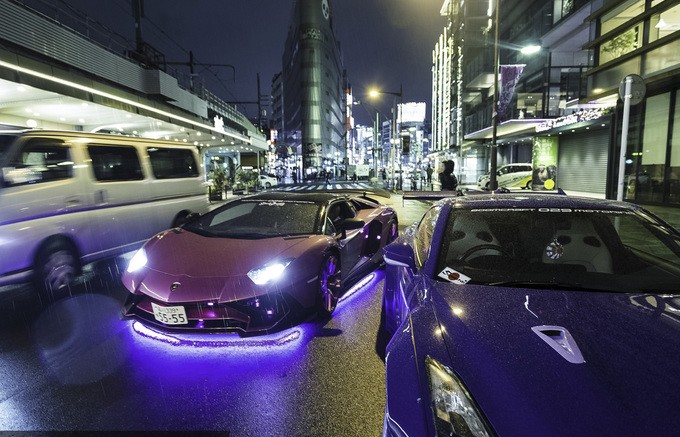 Độ thân rộng wide-body là một trào lưu khá thịnh hành tại Nhật Bản. Văn hóa độ xe của người Nhật còn có thêm kiểu trang trí đèn phát sáng cho siêu xe. Phóng viên của Speedhunters nói rằng đó là lần đầu tiên trong nghiệp cầm máy anh thực hiện bộ ảnh đẹp nhất về siêu xe, dưới màn đêm mưa lất phất và cái lạnh gần 0 độ C.