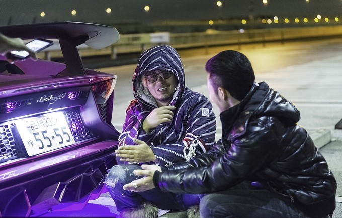 May mắn đến khi anh gặp Nikko với chiếc Nissan GT-R độ thân rộng trên đường phố Tokyo. Cuộc gọi tới một người bạn của chàng thanh niên Nhật Bản đưa đến siêu bò Lamborghini Aventador với những bóng đèn neon màu hồng quanh thân xe.